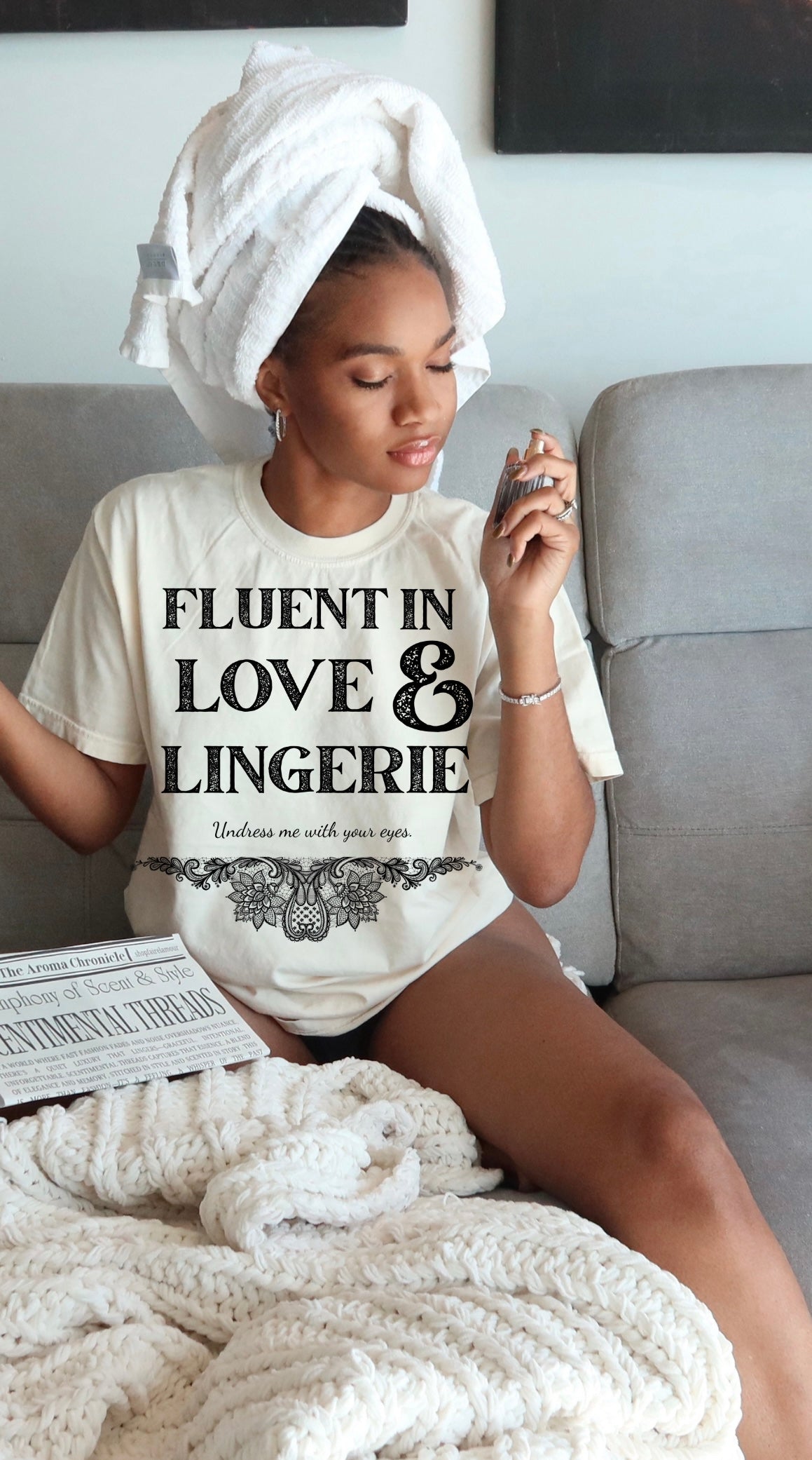 - Statement Tee – “Fluent in Love & Lingerie”